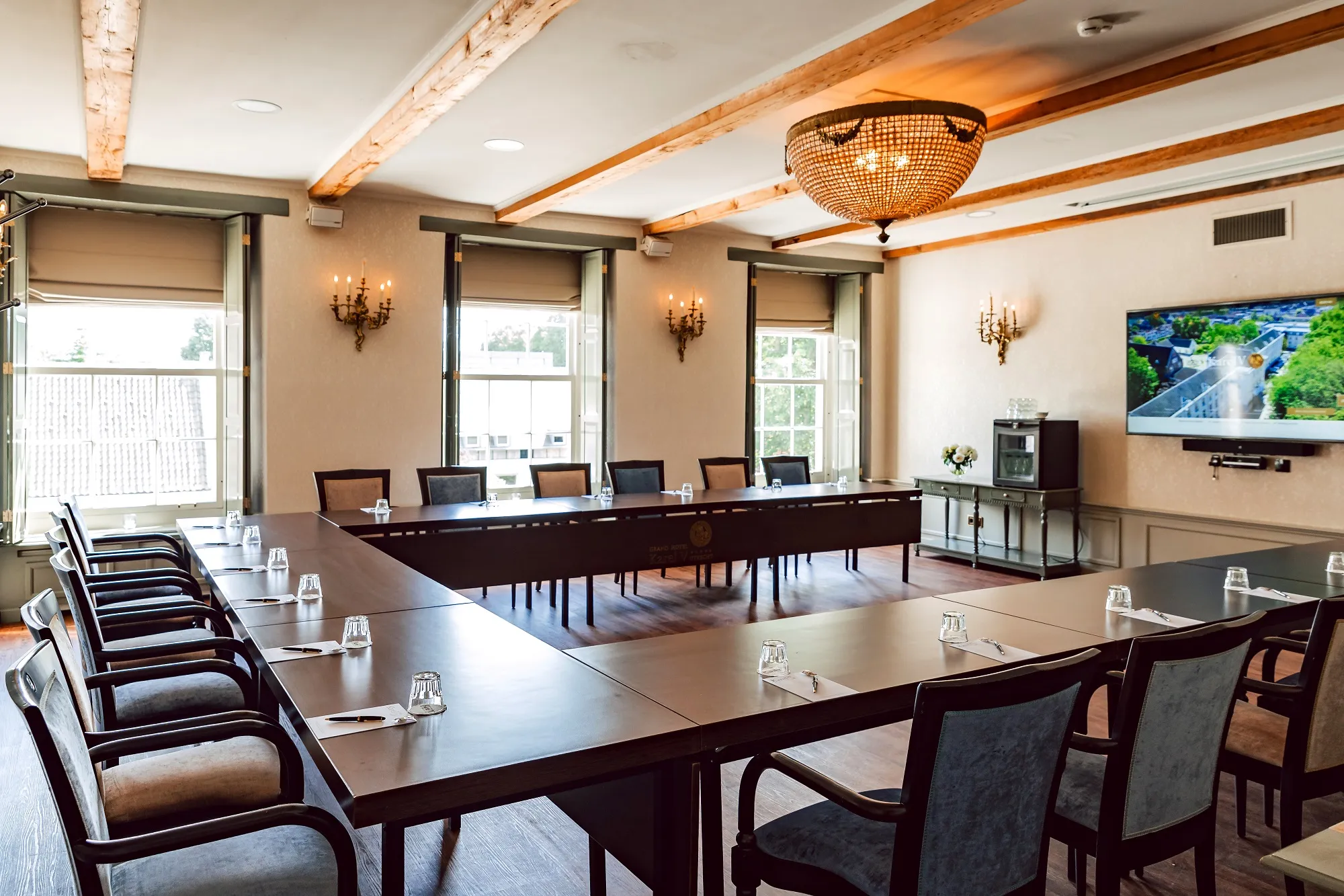 De Anna van Oostenrijk zaal is een sfeervolle kamer met originele houten balken in het plafond, spiegels en kroonluchters. De zaal is een multifunctionele ruimte, geschikt voor zowel meetings als diners. Deze ruimte is ook geliefd als locatie voor een intiem bruidsdiner en biedt plaats aan maximaal 32 personen.