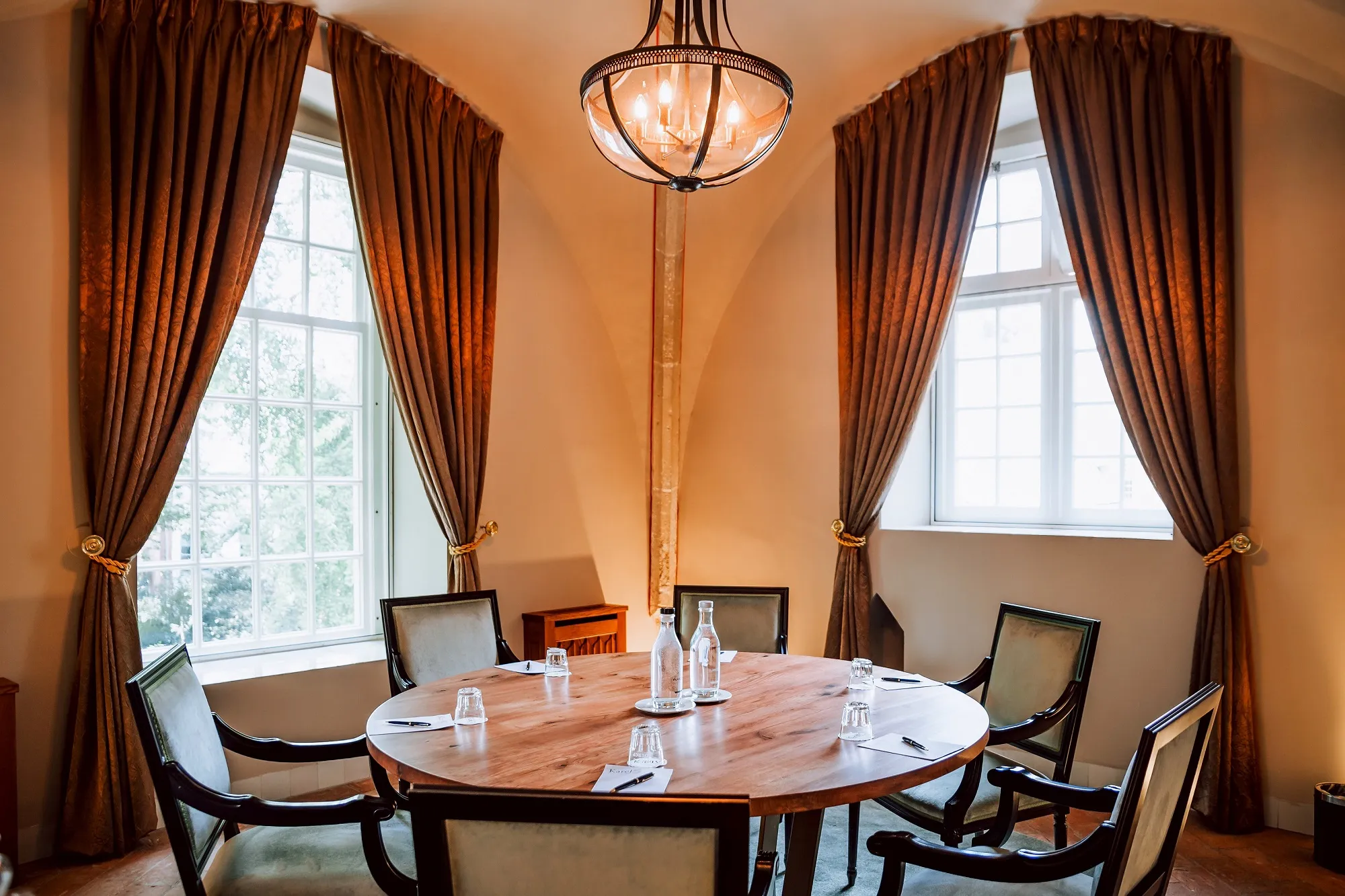 De kamer bevindt zich in de historische kluistoren uit 1450, die oorspronkelijk diende als kluis, archief en gevangenis van de Ridderlijke Duitse Orde. Het karakteristieke kruisgewelf plafond benadrukt de monumentale sfeer.